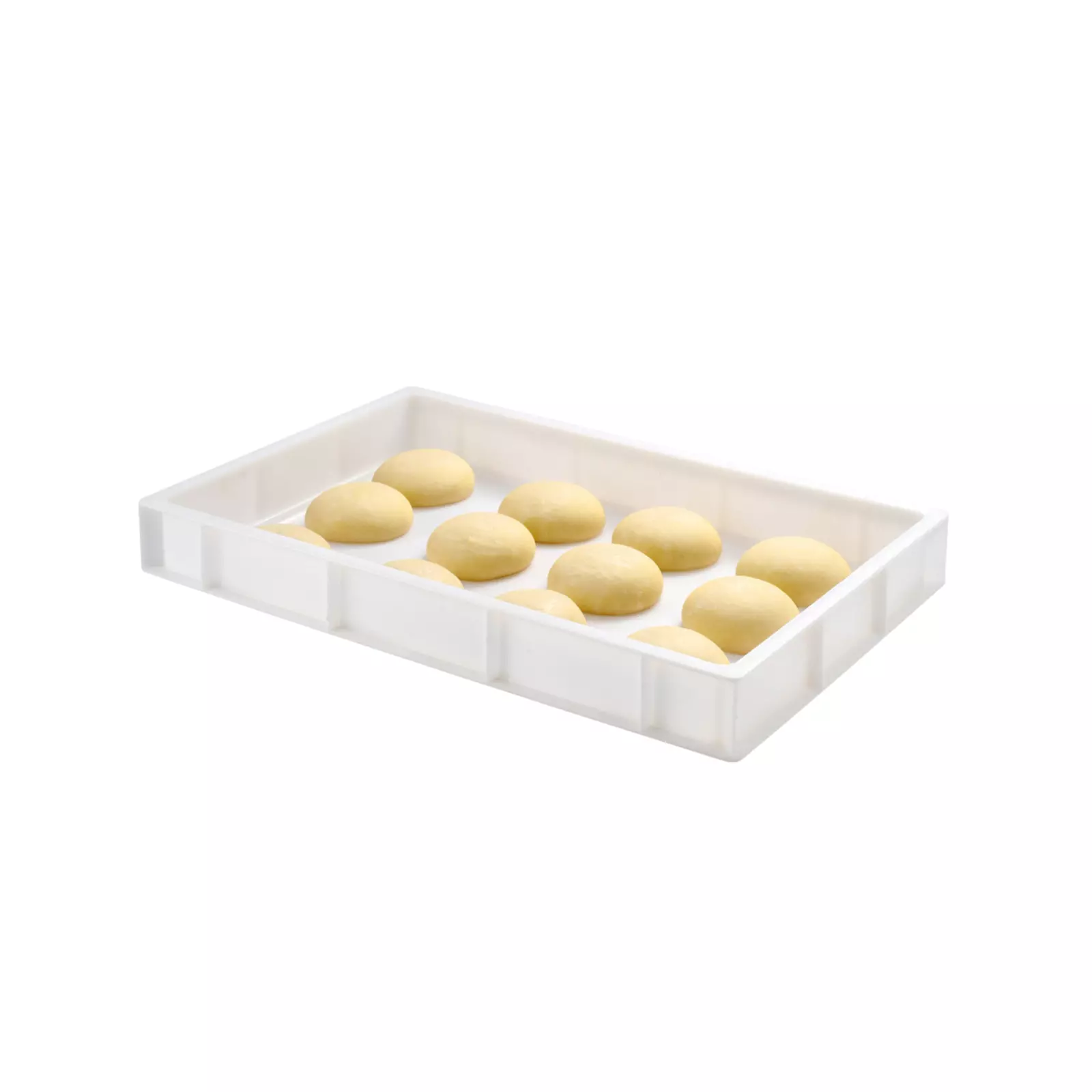Fond totalement plat pour décoller aisément les pâtons, sans aucune perte de matièreParois verticales sans rebord intérieur pour éviter de marquer les pâtons – Angles et fond arrondis pour un nettoyage facile des bacs.