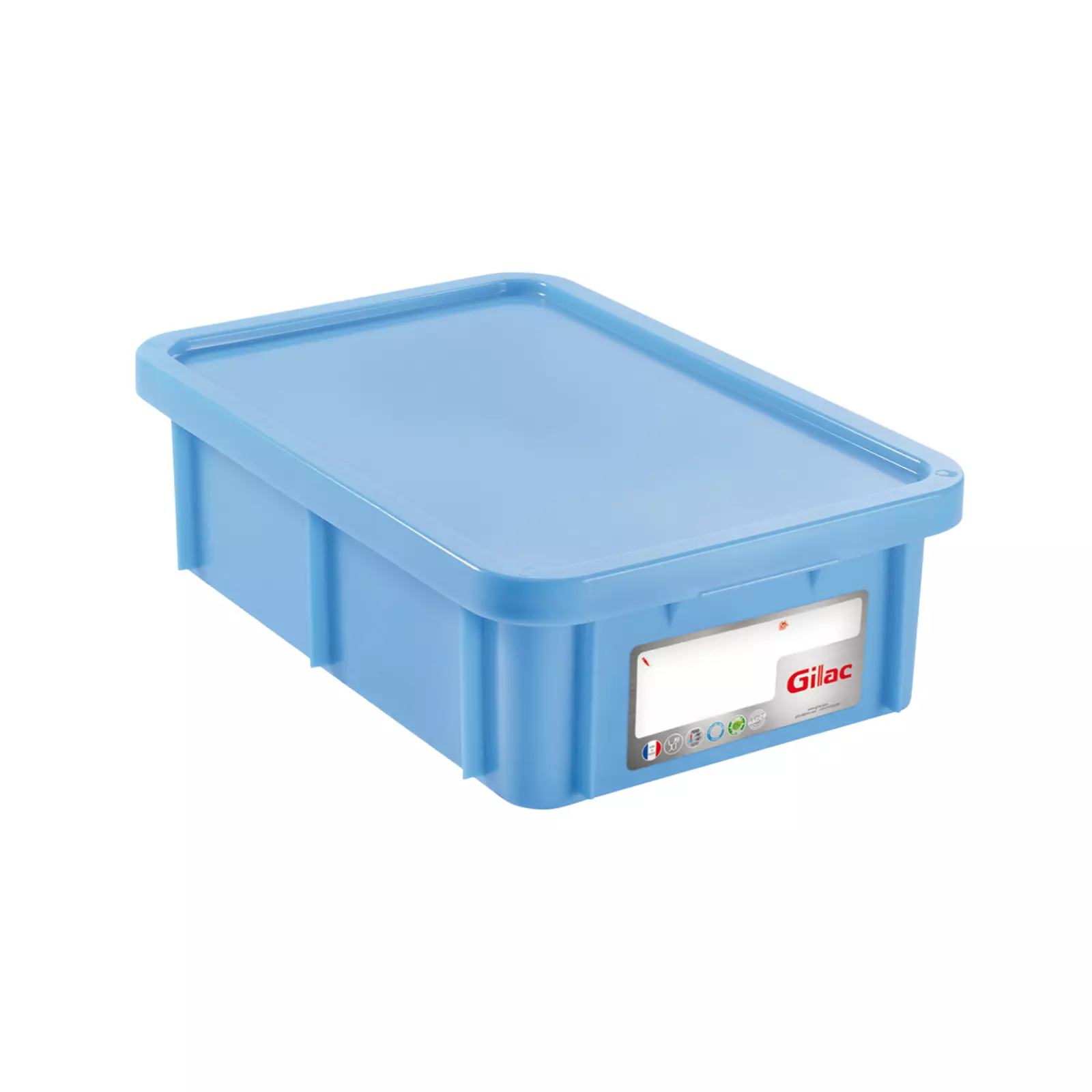 Bac en PEHD sans BPA, résistant de –40°C à +90°C, conçu pour les gros volumes. Couvercle supportant des charges élevées. Bac polyvalent, équipé d’une cartouche d’identification réinscriptible pour le suivi des stocks. Design sans zone de rétention, lavable en machine. Poignées en retrait pour une manipulation facilitée. Empilable sans couvercle. Compatible avec les socles 4 et 6 roues GILAC.Caractéristiques :