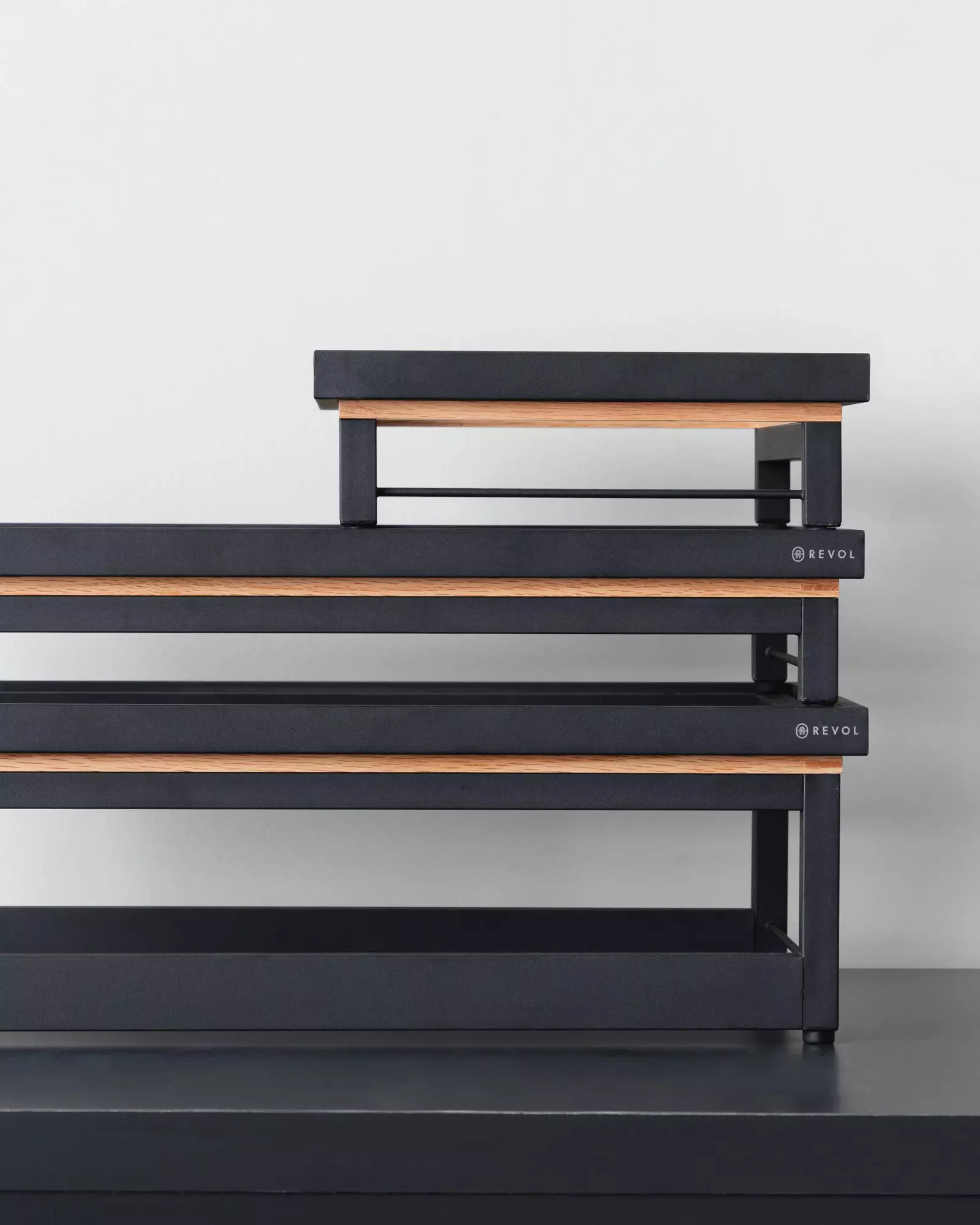 En métal, finition noire effet fonte, les réhausse sont légères et empilables afin d’optimiser le stockage et faciliter le transport. Le bois chêne apporte chaleur et élégance à l’ensemble.Caractéristiques :
