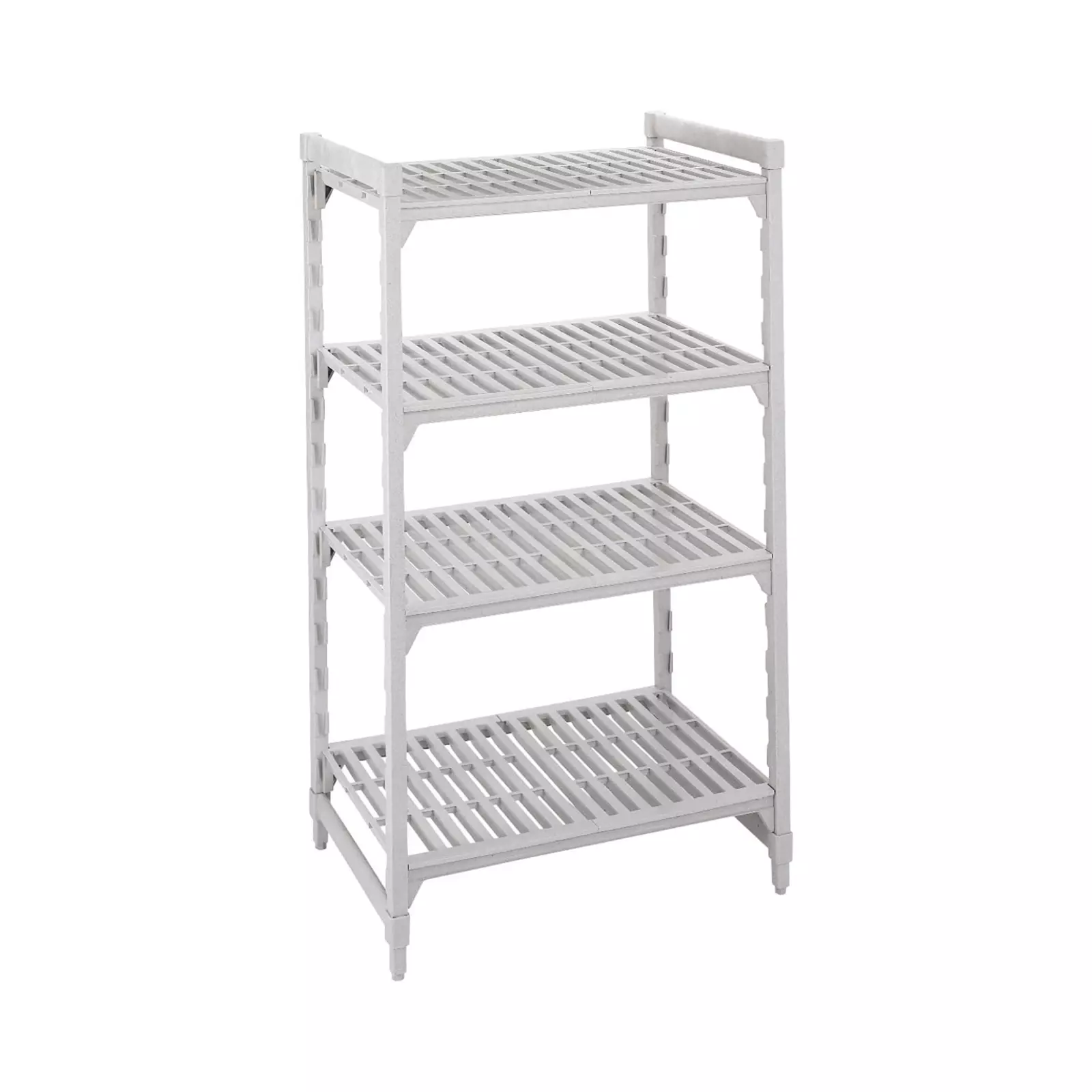 - Unité de base : 4 montants fixes avec pieds de mise à niveau, 4 traverses pour fixer les montants, 8 traverses pour poser les étagères, 4 étagères ajourées.