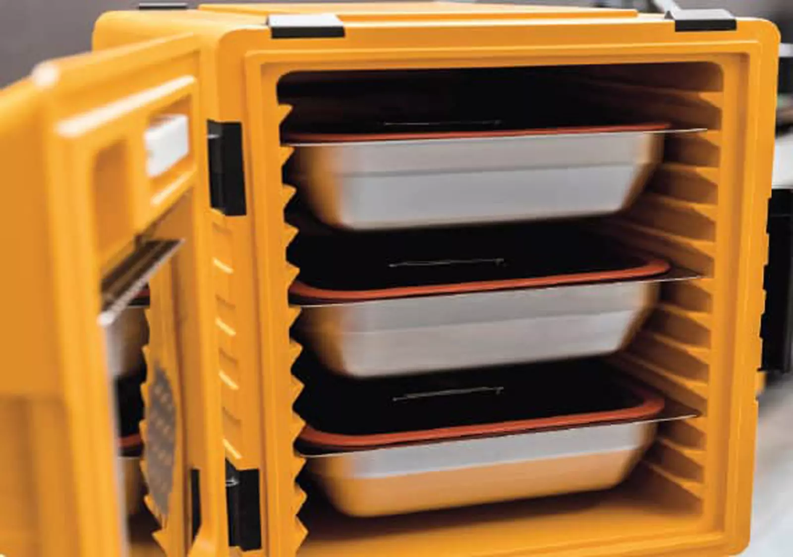 Ce thermoport à chargement frontal est conçu pour le transport de plats en bacs GN 1/1. Il est équipé de 12 paires de glissières avec un espacement de 37 mm. Utilisable de –20°C à +100°C, il convient aussi bien aux préparations chaudes que froides.Caractéristiques :